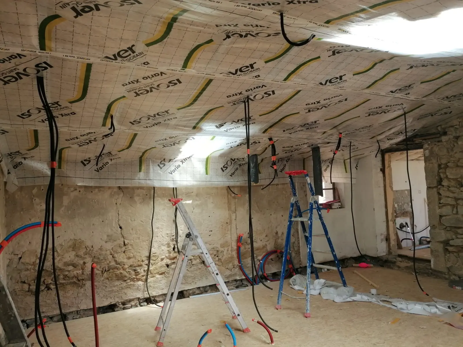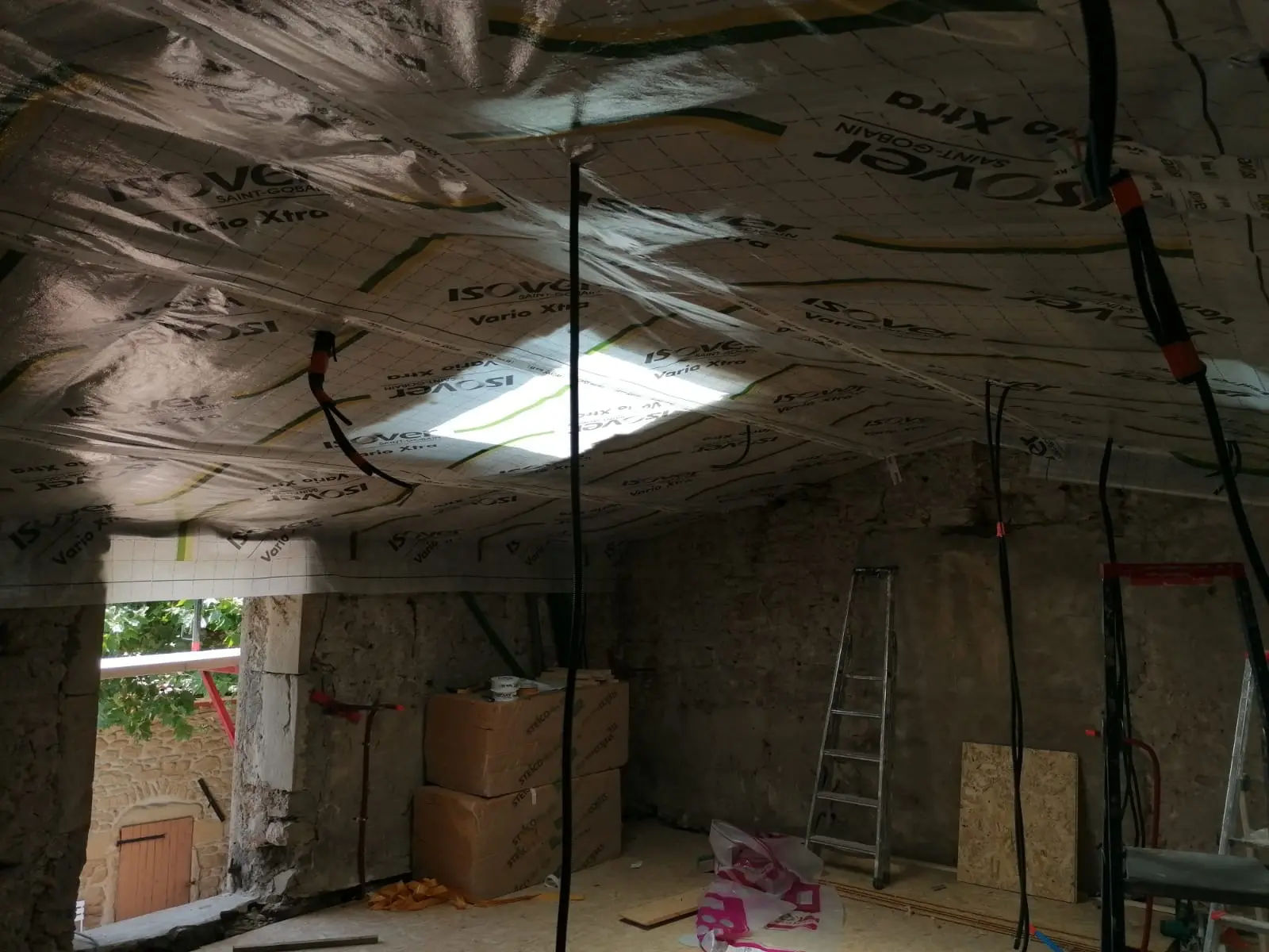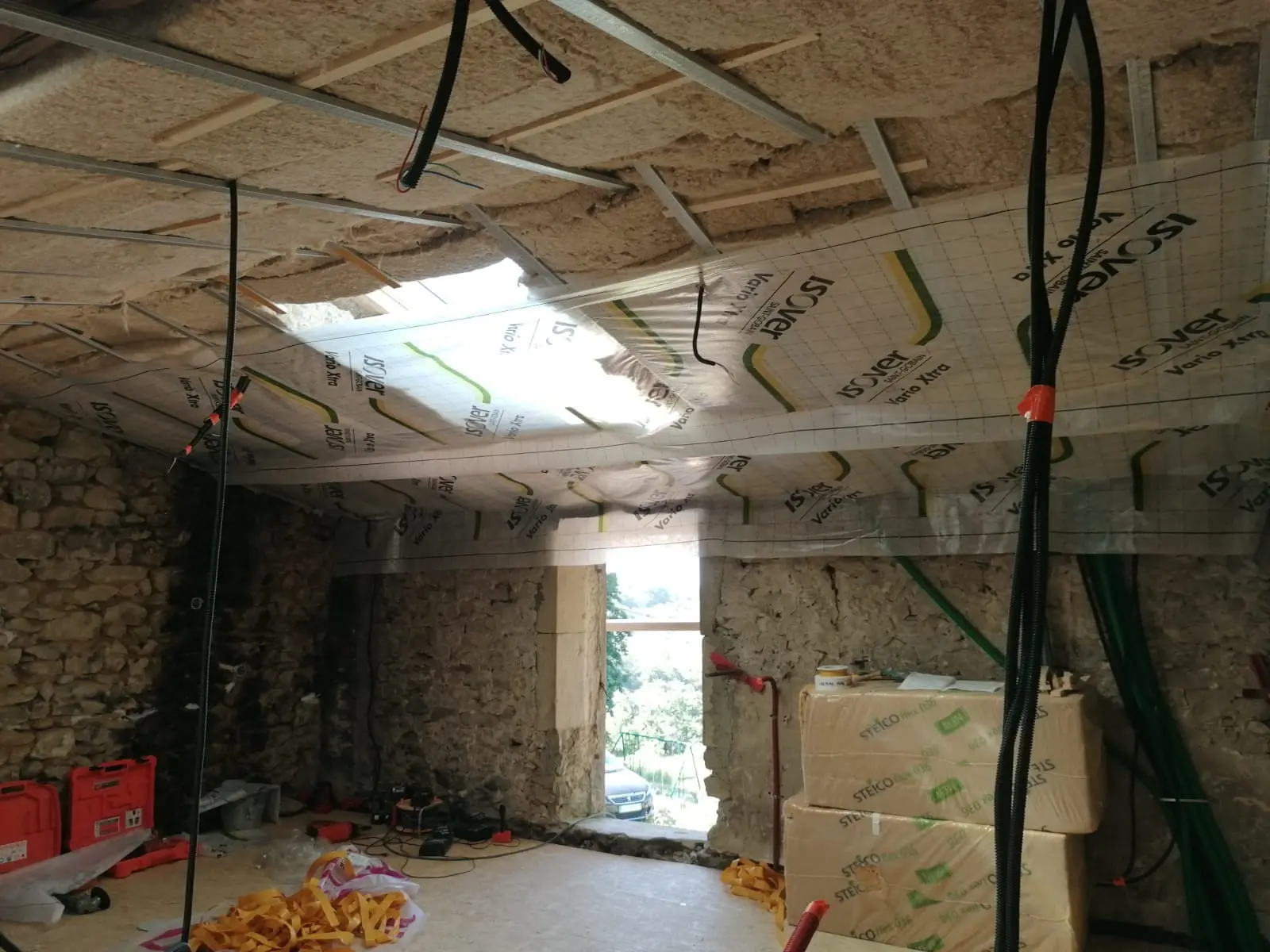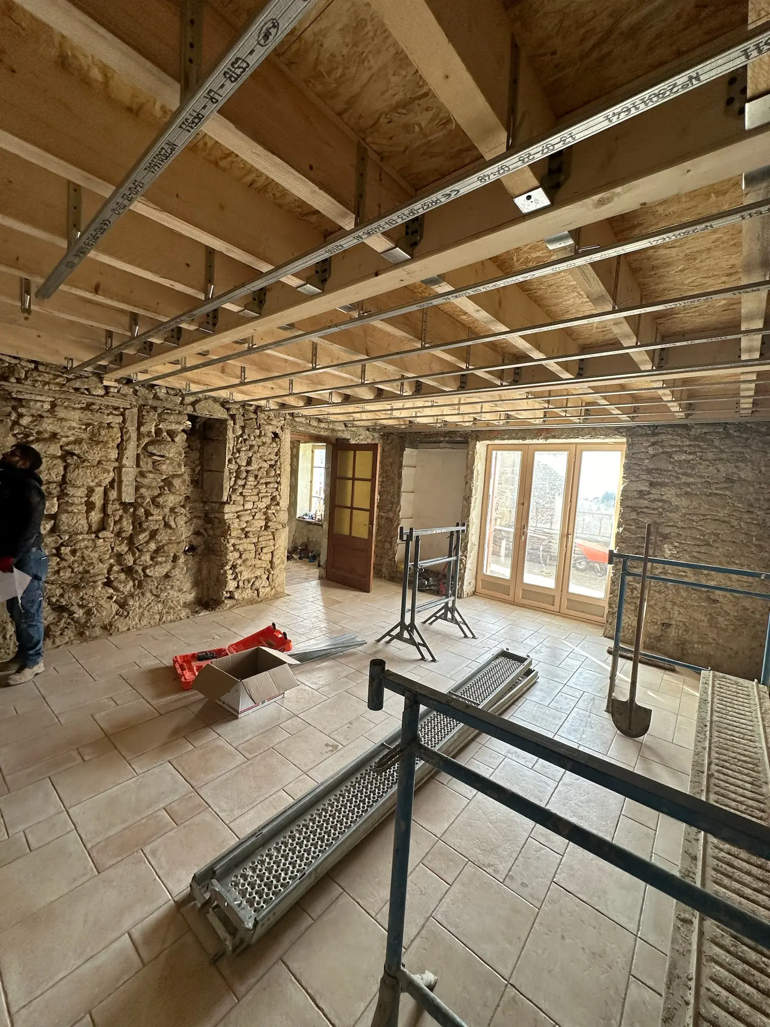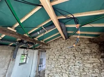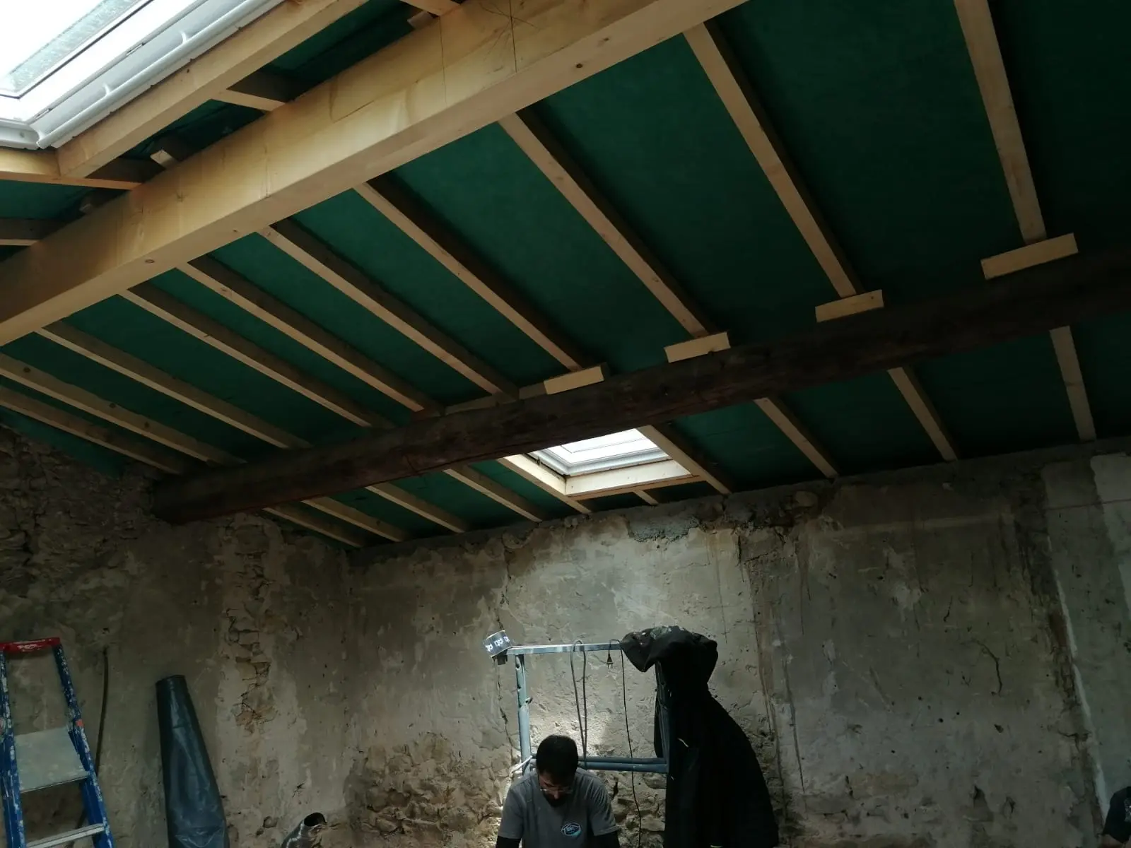 Projet de rénovation d’un corps de ferme avec utilisation de matériaux biosourcés et respect architectural. Les travaux comprennent la reprise de la toiture, des planchers et des façades, ainsi que la mise en place d’un système de chauffage solaire complet.