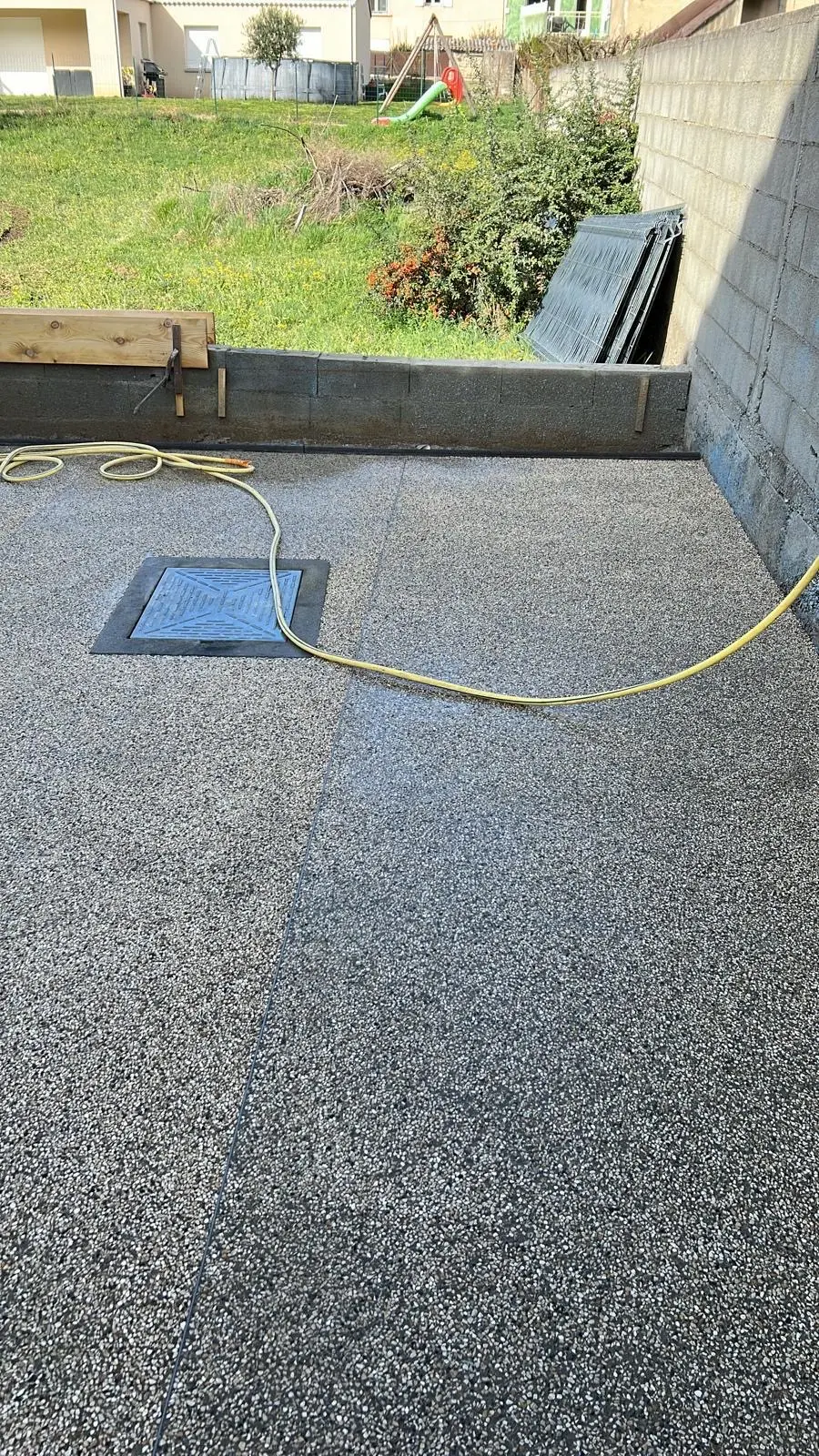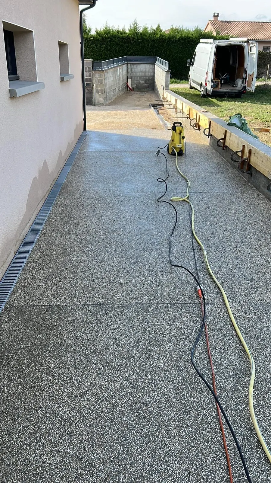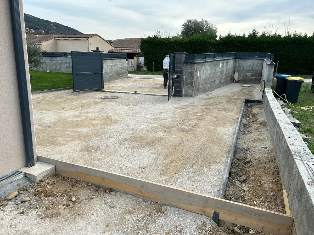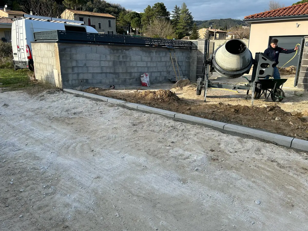 Création d’enrobé et de béton désactivé, réalisation des façades et des clôtures.